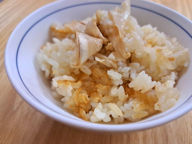 松茸はこれでもかという量で炊き込み、オコゲもしっかり混ぜこんで!