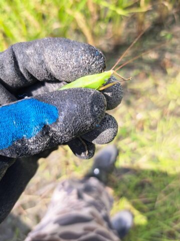 善いことをしたので、夜中に助けたキリギリスが恩返しに来るかもしれないことを期待しつつ、別の侵入者さんの暴れ回った跡を横目に虎視眈々と刈り進めるよ🫎