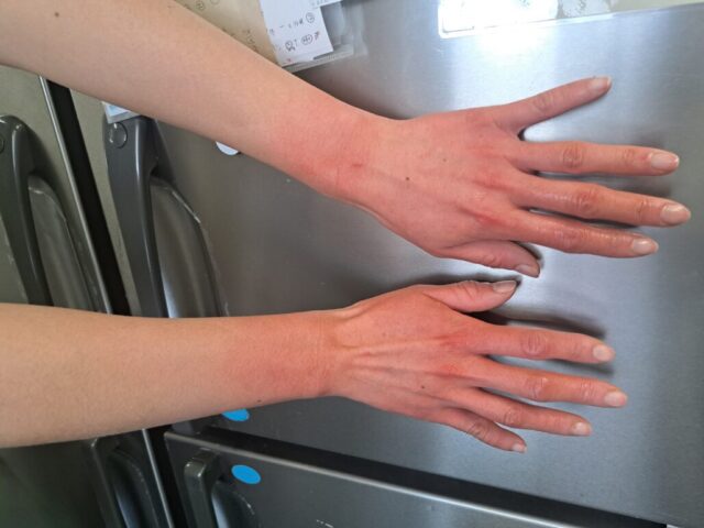 午後の休憩中、雪に歓喜する、スタッフY☃️